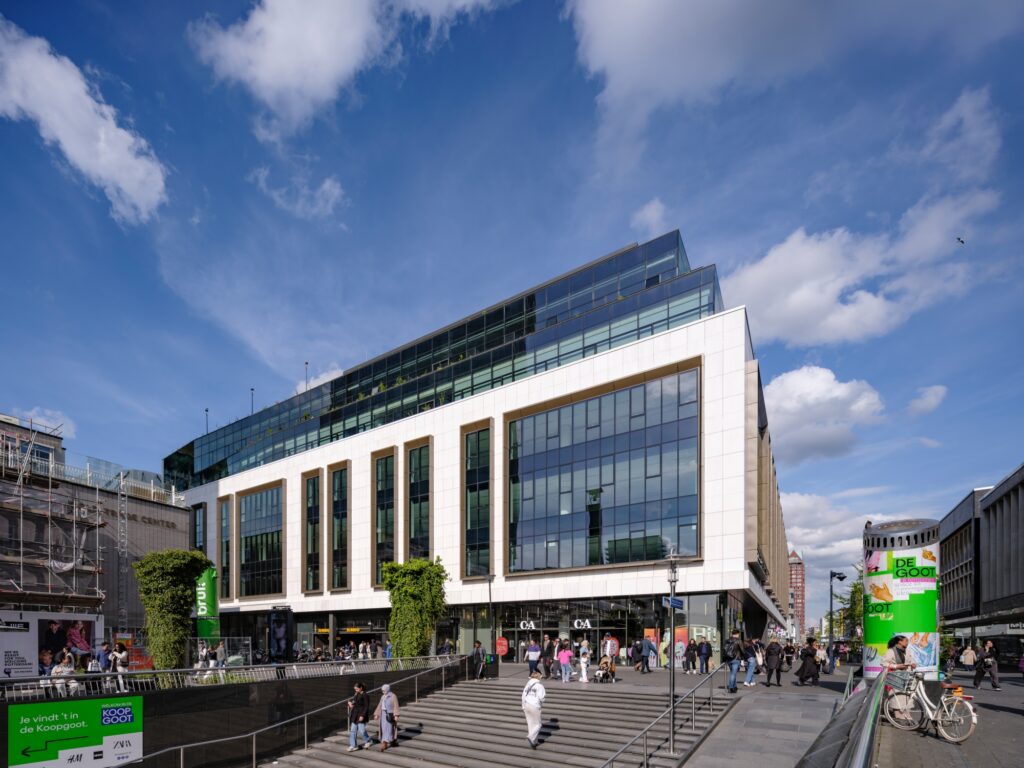 In het hart van Rotterdam staat een markant gebouw dat een nieuw leven kreeg: AIR. Ooit gebouwd eind jaren veertig als warenhuis van V&D, later kort in gebruik door Hudson’s Bay, en na een jarenlange verbouwing in 2024 heropend als high-end multi-use gebouw met de grootste footprint van de stad. De transformatie is uitgevoerd door Schroders capital en NEOO, in samenwerking met WOMO Architects en D/Dock, met een duidelijke ambitie: een toekomstbestendig gebouw creëren dat excelleert in duurzaamheid, flexibiliteit en gebruikersbeleving. Het resultaat: een BREEAM-NL Excellent certificering, behaald met behoud van het oorspronkelijke casco.